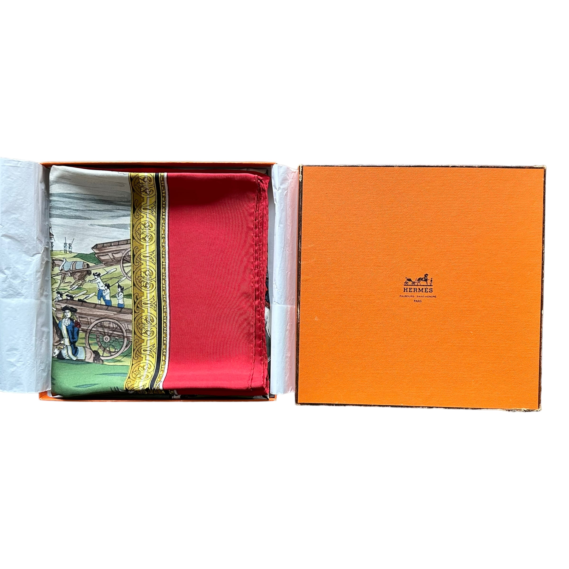 A very beautiful Carré Hermès dating from 1960 and never reissued. For collectors, in very good condition and in its box. Hermès Paris signature present, no copyright logo, the latter only appearing on scarves from 1967. Very rare. Very researched. Côte Carré Society: 9/10
